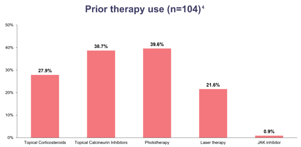 The study enrolled patients with longstanding vitiligo, with 42% having progressive disease and 94% having received prior therapy4
