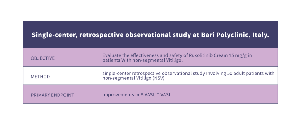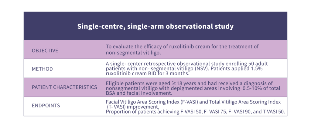 BID: twice a day; BSA: Body surface area; F-BSA: facial body surface area; F-VASI: Facial Vitiligo Area Scoring Index; T-BSA: total body surface area.