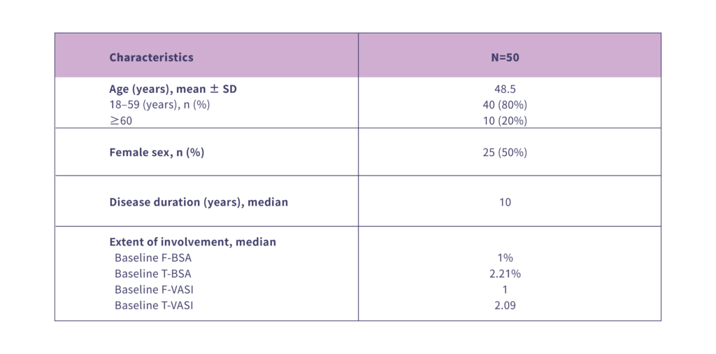 F-VASI75 achieved in 40% and T-VASI50 in 42% of patients by Week 12.15